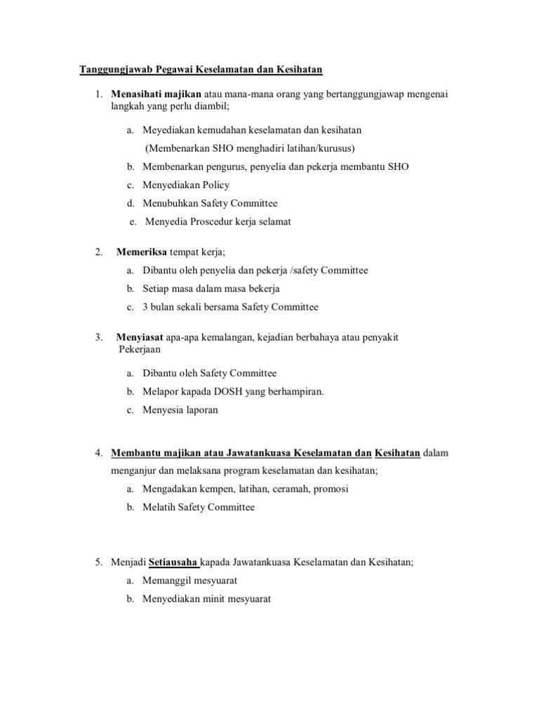 Apabila anda memilih kerjaya sebagai pegawai keselamatan dan kesihatan atau lebih mesra disebut sho, anda perlu beberapa perkara terlebih dahulu sebelum anda memohon sebagai sho yang berdaftar dengan jabatan keselamatan dan kesihatan pekerjaan (jkkp). Klik menu pegawai keselamatan dan kesihatan. Sylvia stephen pegawai teknologi makanan c41 unit keselamatan dan kualiti makanan pejabat kesihatan kawasan kudat tel Klik orang yang kompeten untuk senarai modul. Negara memerlukan lebih ramai pegawai keselamatan dan kesihatan pekerja selaras dengan hasrat kerajaan yang komited untuk meningkatkan tahap keselamatan dan.