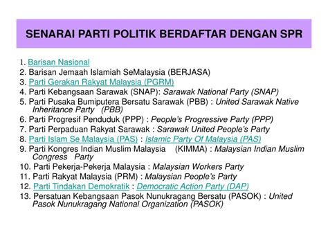 Senarai Parti Politik Di Malaysia / Senarai parti politik Malaysia - Wikipedia Bahasa Melayu ... - ] tidak diketahui atau jangka masa kelantangan yang rendah.